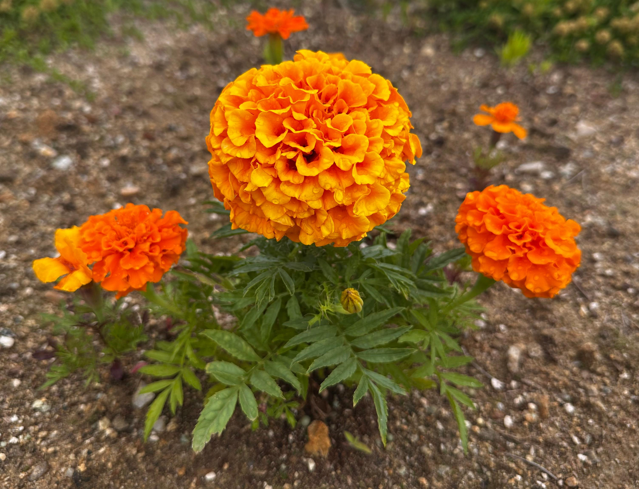 그중 두개는 주황색꽃으로 올라왔다. 따로 관리가 필요하지 않게 잘 자라는 태산메리골드.